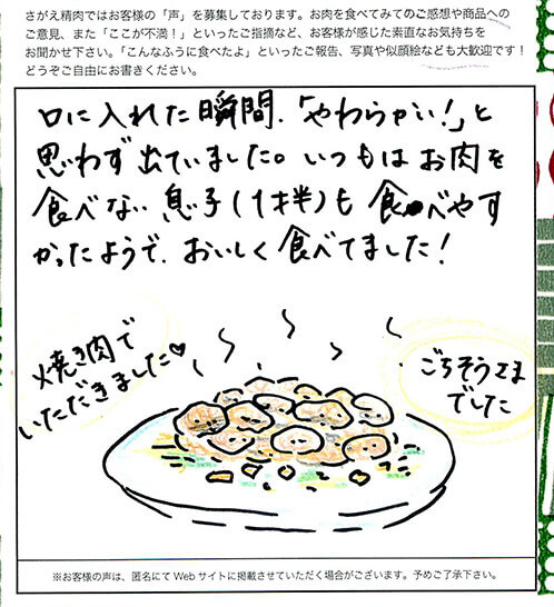 「ギフトを受け取って、開けた瞬間にお肉を見て笑顔になり、食べてまた笑顔になる!」と喜んでいただいています。