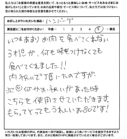 いつもあまりお肉を食べてくれない3才児が、何も味をつけなくても食べてくれました!! 内祝いで頂いたのですが、次回何かお祝いがあった時こちらを利用させていただきます。もらってとってもうれしいお品です!