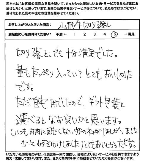 切り落としでも十分満足でした【山形牛/切り落とし/お取り寄せ】