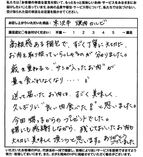 山形の肉は美味しいと聞いていましたが、本当に美味しかったので孫にもすすめます【焼肉/両親へのギフト】