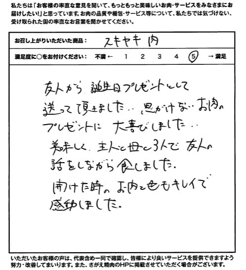 友人からの思いがけないお肉の誕生日プレゼントに大喜びしました。。【すきやき/誕生日】