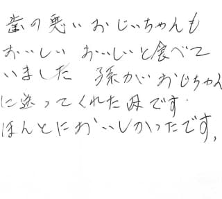 歯の悪いおじいちゃんも「おいしい、おいしい」と食べていました【両親へのギフト】