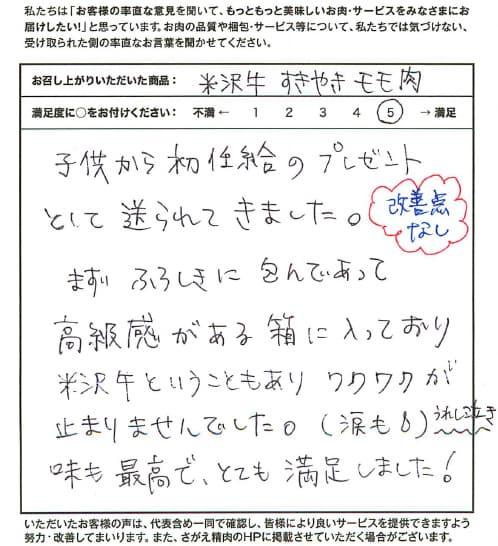 子供からの本当の声が書いてあり私も主人もすごくうれしかったです【米沢牛/すきやき 上モモ/両親へのギフト】