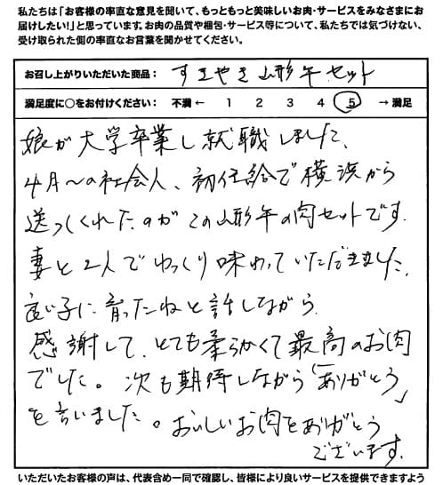 良い子に育ったねと話しながら感謝して、とても柔らかくて最高のお肉でした【山形牛/すきやき/両親へのギフト】