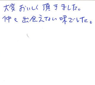 大変おいしく頂きました。仲々出会えない味でした。