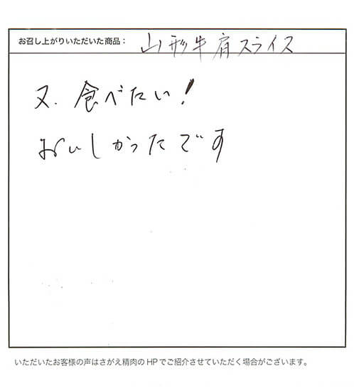 又、食べたい!おいしかったです【山形牛/肩スライス/お取り寄せ】