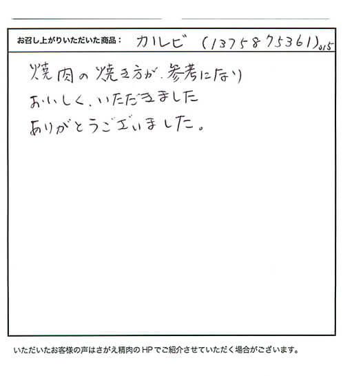 焼肉の焼き方が、参考になりおいしく、いただきました【やきにく/お取り寄せ】
