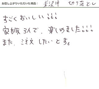 すごくおいしい!!!家族3人で、楽しめました!!!また、注文したいです。