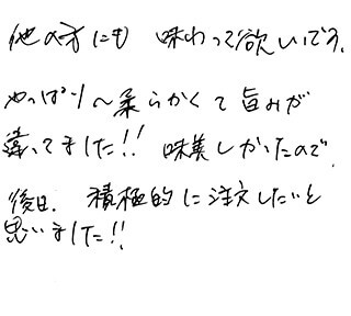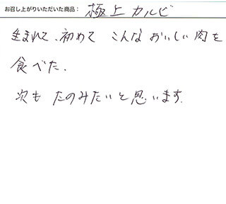 生まれて初めてこんなおいしい肉を食べた。次もたのしみたいと思います。