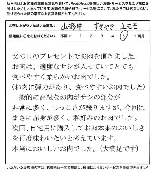 適度なサシが入っていてとても食べやすく柔らかいお肉でした。【山形牛/すきやき上モモ/父の日】