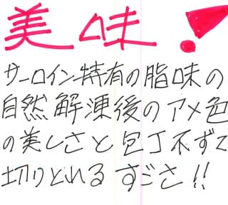 美味! サーロイン特有の脂味の自然解凍後のアメ色の美しさと包丁不ずで切りとれるすごさ!!