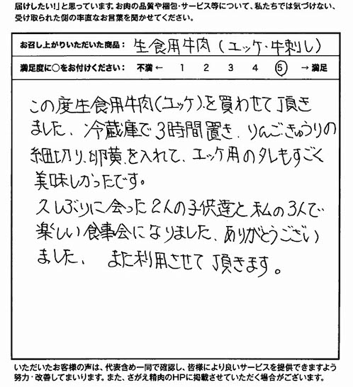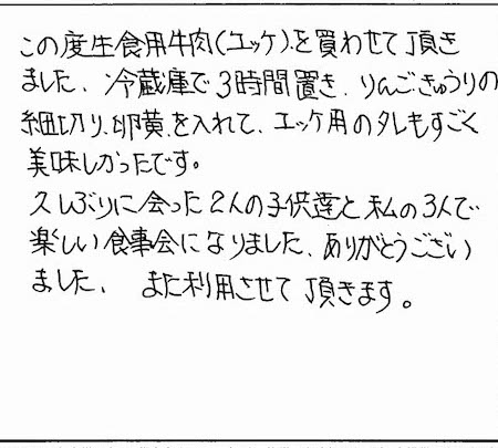 楽しい食事会になりました【山形牛/ユッケ/お取り寄せ】