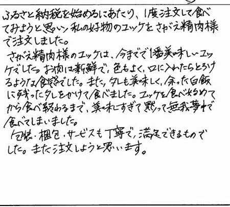 お客さまの声や口コミ・レビューをご紹介いたします。お寄せいただいた温かいお言葉を励みに、もっと、もっと、ご満足いただけるお肉をご提供できるよう努めてまいります。