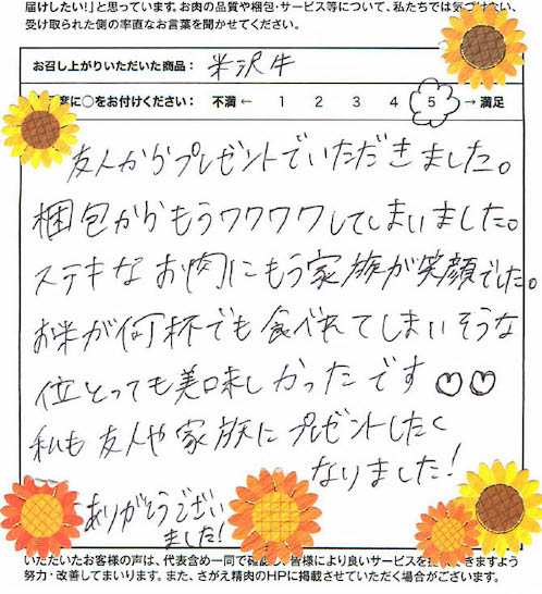 家族皆、笑顔になりました!【米沢牛/すきやき/ギフト】
