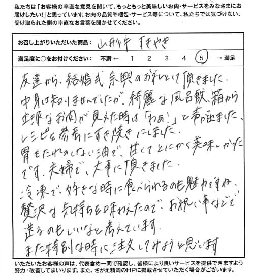 失敗したくない贈答品の時に、私も使ってみようと思いました【山形牛/山形牛 すきやき 上モモ/ギフト】