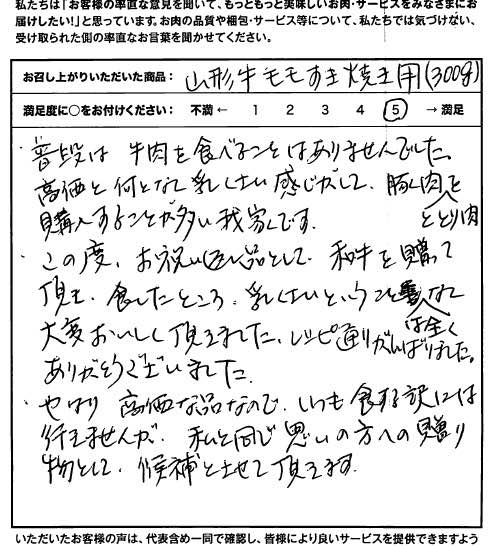普段は牛肉を食べませんが、大変おいしく頂きました。【山形牛/すきやき 上モモ/内祝い】