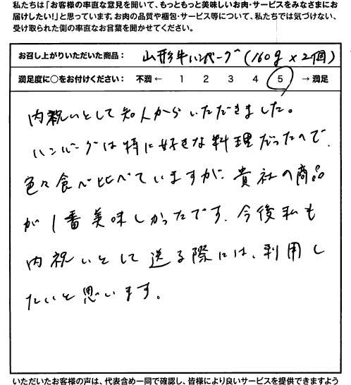 色々食べ比べていますが、貴社の商品が一番美味しかったです【山形牛/山形牛ハンバーグ/内祝い】