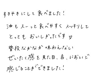 すきやきにして食べました!油もスーっと食べやすくスッキリしてとってもおいしかったです♡ 普段なかなか味わえないぜいたく感を見た目、舌、においで感じることができました!