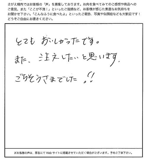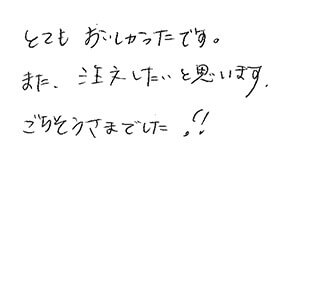 とてもおいしかったです。 また、注文したいと思います。 ごちそうさまでした!!