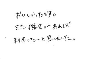 美味しかったです。また機会があれば利用したいと思いました。