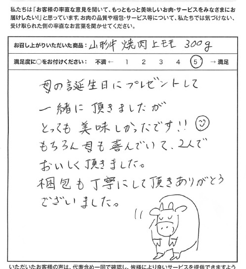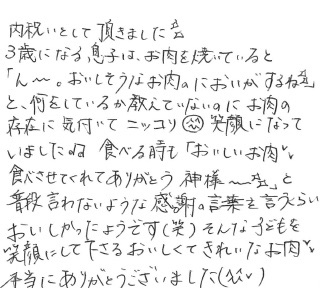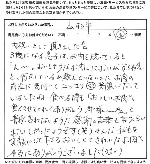 子どもを笑顔にして下さるおいしくてきれいなお肉、本当にありがとうございました!【山形牛/焼肉上モモ/内祝い】