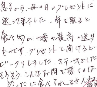 息子から母の日のプレゼントに送ってきました。歳をとると食べ物の贈り物が一番です【ステーキ/母の日】