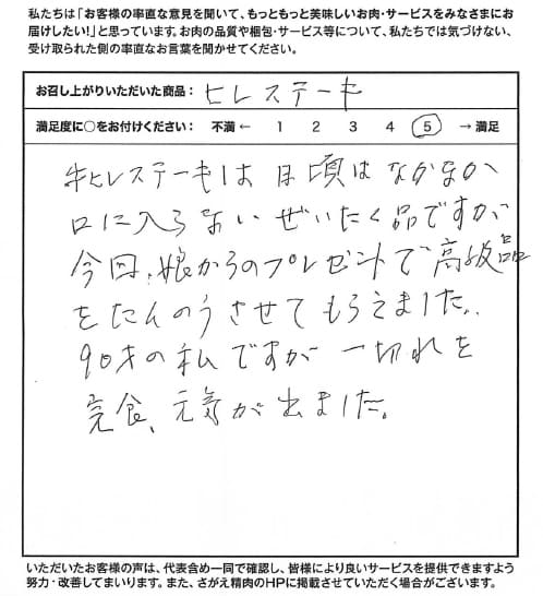 90才の私ですが一切れ完食、元気が出ました【ステーキ 極上ヒレ/両親へのギフト】