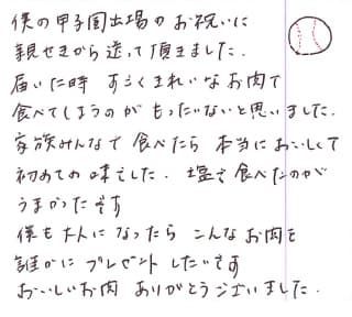甲子園出場のお祝いに親戚から送って頂きました【山形牛/焼肉/陣中見舞い】