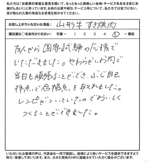 やわらかいお肉で当日も頑張ることができました【山形牛/すきやき/陣中見舞】