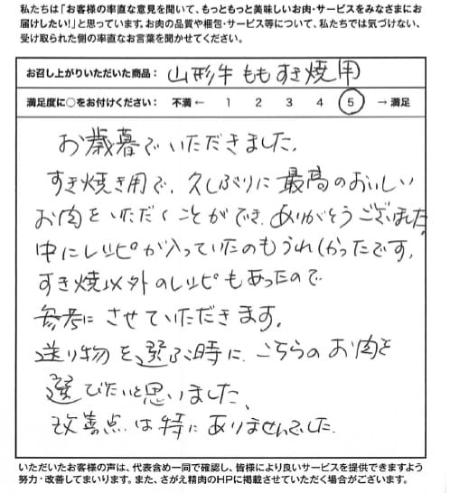 久しぶりに最高のおいしいお肉をいただくことができました【山形牛/すきやき 上モモ/お歳暮】