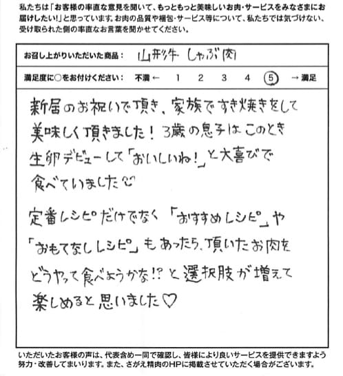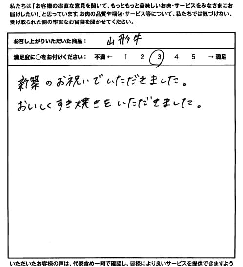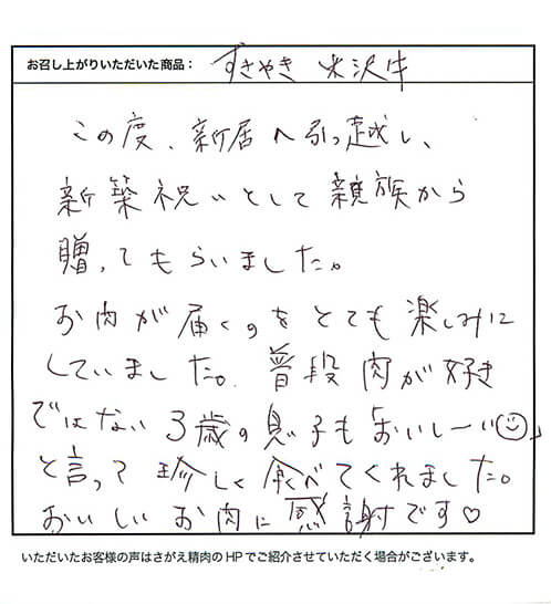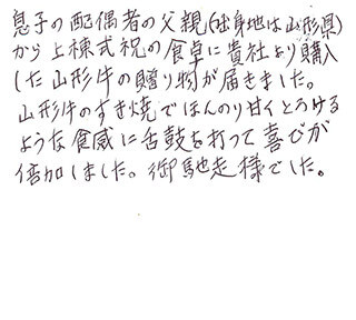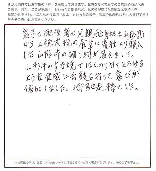 喜びが倍加しました【山形牛/すきやき/新築祝い】