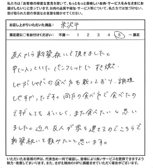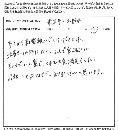 とてもおいしく、また食べたいと思いました【米沢牛/新築祝】
