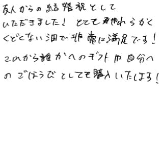 友人から結婚祝としていただきました!とてもやわらかくくどくない油で非常に満足です! これから誰かへのギフトや自分へのごほうびとして購入いたします!