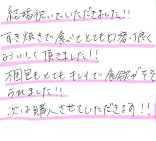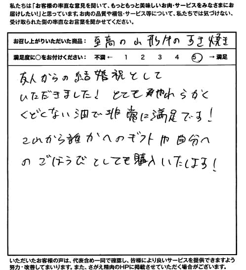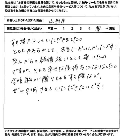 友人からの結婚祝いとして頂いたのですが、とても幸せな気持ちになりました【山形牛/すきやき/結婚祝】